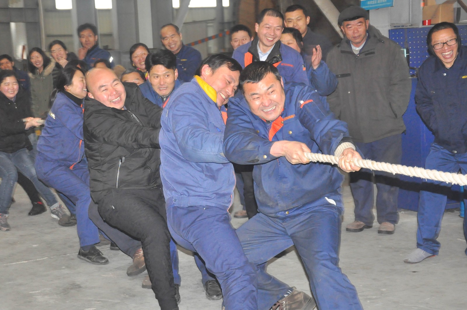 公司领导也在队伍旁边助阵加油,未参赛的员工自发组成啦啦队为比赛队员呐喊加油,号子声、呐喊声,此起彼伏,飘荡在上空。